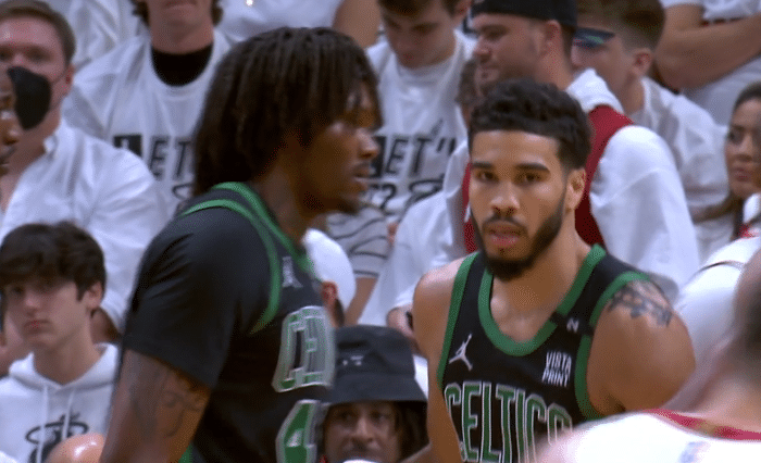 首节的比赛开始后,两队就给出了很大的防守强度,进攻端两队连续不中,热火开局6次出手全部打铁,罗威补篮命中本场比赛第一球,巴特勒不中,罗威篮下错位轻松放篮得分,巴特勒晃飞防守上篮得分帮助热火打破得分荒,开局打了4分钟的时间,斯玛特领到了2次犯规下场休息,怀特罚球线抛投得分,阿德巴约杀入篮下上反篮得分,巴特勒不中,阿德巴约高高跳起隔着巴特勒和霍福德暴扣得分,怀特送妙传,霍福德空接得分,塔克三分不中,怀特杀篮下再中,凯尔特人11:6领先热火,比赛进入暂停。