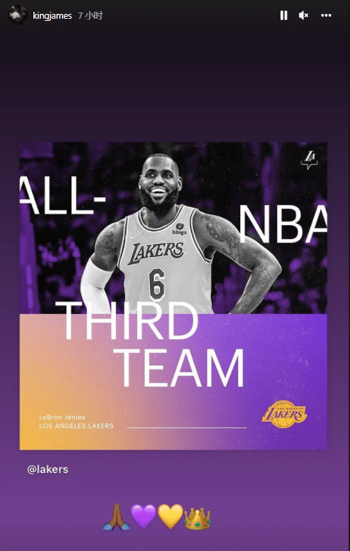 178直播05月26日讯 湖人球星詹姆斯更新社交媒体,转发湖人官媒动态,庆祝自己入选最佳三阵;老詹先是转发湖人庆祝他入选最佳三阵的动态,配上爱心和王冠表情;湖人官方晒詹姆斯本赛季隔扣乐福、轰进三分以及大帽对手的精彩画面,并写道:史上第一位第19个赛季入选最佳阵容的球员,为国王欢呼!