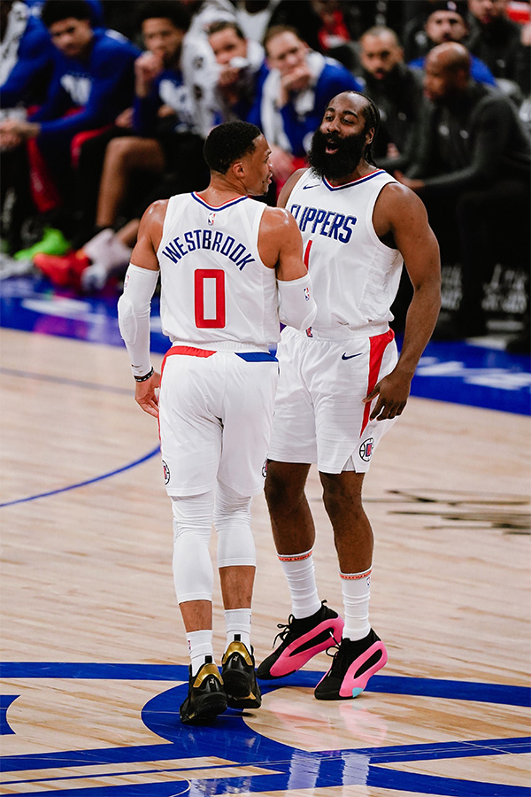 178直播12月03日讯 ,快船客场轻取击败联盟倒数第一的活塞,小卡17投12中高效轰下33分,乔治末节发力,威少也是快船赢球的大功臣,威少一战比肩詹姆斯连创纪录,哈登咧嘴大笑祝贺威少达成25000分里程碑。