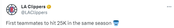 4、威少和哈登成为史上第一对同一个赛季达成25000分的队友