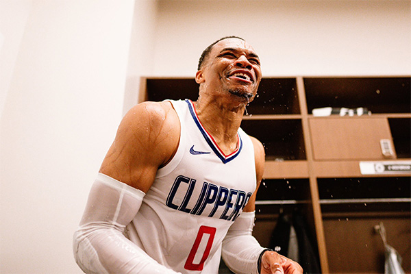 在击败活塞的比赛中,威少全场替补出战25分钟,13投10中、三分3中2轰下23分9助攻3篮板2盖帽,职业生涯总得分正式达成25000分,赛后威少获得比赛用球,回到更衣室中,快船队为威少泼水庆祝。