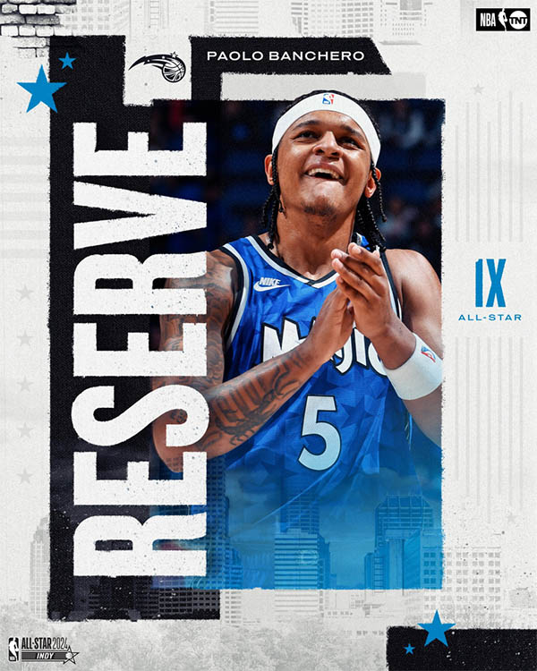 魔术的班凯罗入选东部全明星替补阵容。这是班凯罗生涯首次入选全明星。赛季至今,班凯罗场均23分7篮板5助攻,投篮命中率45.3%,三分命中率35.8%。
