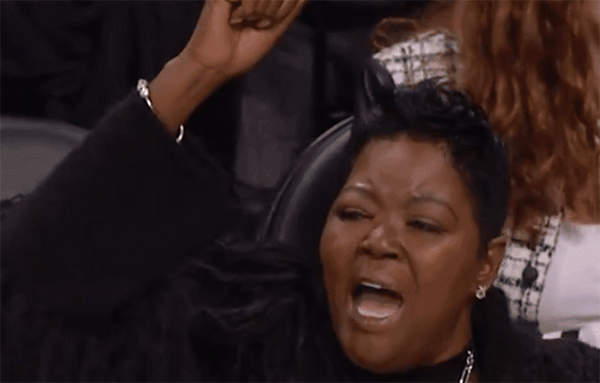 这场比赛杜兰特的妈妈前来观战,期间KD勾手得分,镜头给到他的妈妈,挥拳庆祝,很显然杜兰特的妈妈也很激动,看到儿子的表现很好。
