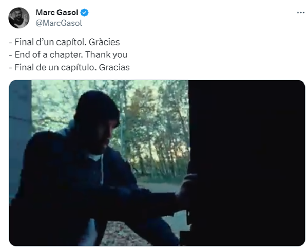 马克-加索尔通过社交媒体宣布退役,晒视频并且用多种语言配文写道:一个篇章的结束,谢谢你们。