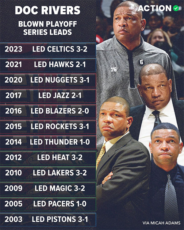 名嘴A-史密斯表示:他有三次在3-1领先的情况下被逆转,在抢七大战中,他作为主帅的战绩为6胜10负,包括近5次抢七全部失利。就像我说的,阿德里安-格里芬不会待到赛季结束,我不说今年雄鹿必须要夺冠,如果里弗斯不能把握住这次机会的话,那这就将是他最后一次在NBA当主教练了。