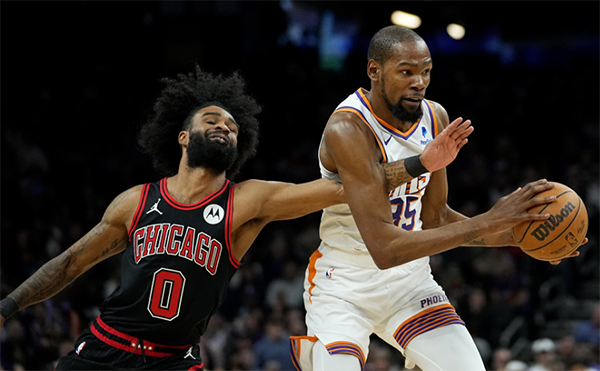 主场对阵公牛,太阳13-14开场后集体哑火并且被公牛打出11-0,布克连得5分止血,可公牛火力不减,第一节打完太阳22-37落后15分;第二节,太阳最多落后到23分,之后三巨头带队追分,半场打完太阳仍落后17分。
