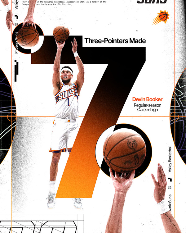 2022年12月18日,布克全场出战42分钟,35投21中、三分12中6、罚球15中10狂砍58分5篮板5助攻,第三节独砍21分,末节开场连得13分,最终带领球队24分逆转鹈鹕。