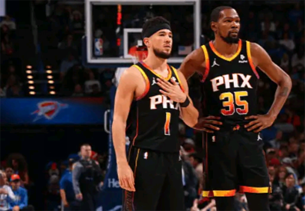 第二节,杜兰特和比尔带队掌控局面,布克上场后继续砍分,单挑翻身后仰中投太潇洒,迎着防守干拔三分,单节8中4又拿到13分,上半场命中6记三分独砍37分,半场打完太阳领先20分。