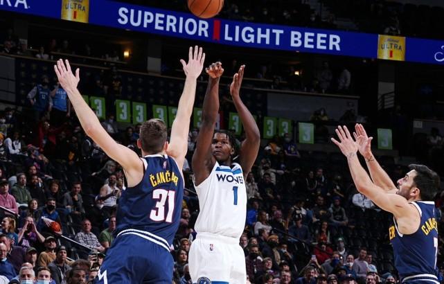 对掘金的比赛,也是爱德华兹的第100场比赛。他的生涯总得分来到2011分。算上爱德华兹,NBA史上只有7位20岁或以下的球员能在生涯前100场比赛至少得到2000分。其余六位是安东尼、东契奇、杜兰特、欧文、詹姆斯和锡安。比肩这些球员,足以证明爱德华兹的得分能力。