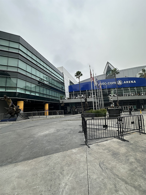 目前湖人球馆外已经有“魔术师”约翰逊、“大鲨鱼”奥尼尔、logo男韦斯特和埃尔金-贝勒五大传奇球星的雕像,科比的雕像将于美国时间2024年2月8日进行揭幕仪式。
