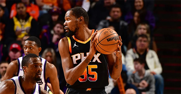 下半场,杜兰特三分开张,布克和阿伦输送火力,可福克斯、小萨和穆雷连中三分,一波流浇灭太阳的反扑火焰并且领先到21分,之后太阳三巨头继续抵抗,三节打完太阳落后12分;期间杜兰特险些惨遭穆雷隔扣。
