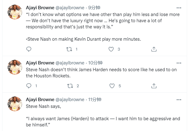 没有欧文,篮网是否需要哈登更多地得分,纳什表示:我认为不需要,我不认为詹姆斯-哈登需要像他在休斯顿火箭时那样得分,但我一直希望哈登一直保持进攻状态,我希望他有侵略性,做他自己。