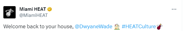 热火官推晒致敬视频并且配文写道:欢迎回到你的地盘。
