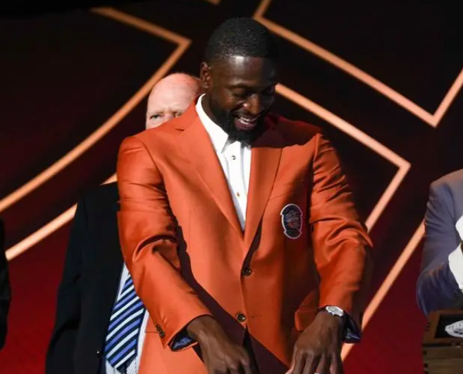 韦德职业生涯13次入选全明星、8次入选最佳阵容、3次夺得总冠军,05-06赛季夺得总决赛MVP、1次得分王、热火生涯总得分21556分队史第一、入选NBA75大球星,成为热火队史第一位被热火选中并入选名人堂的球员,将在今年拥有一座雕像。