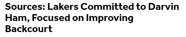 名记Chris Haynes报道了据消息人士透露,湖人队老板珍妮-巴斯和篮球运营总裁罗伯-佩林卡已经通知二年级主帅哈姆,他的帅位并无危险。高层的这一保证让哈姆可以完全专注于重新指导他的球队。