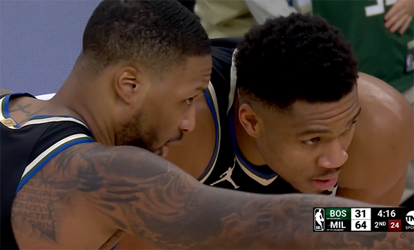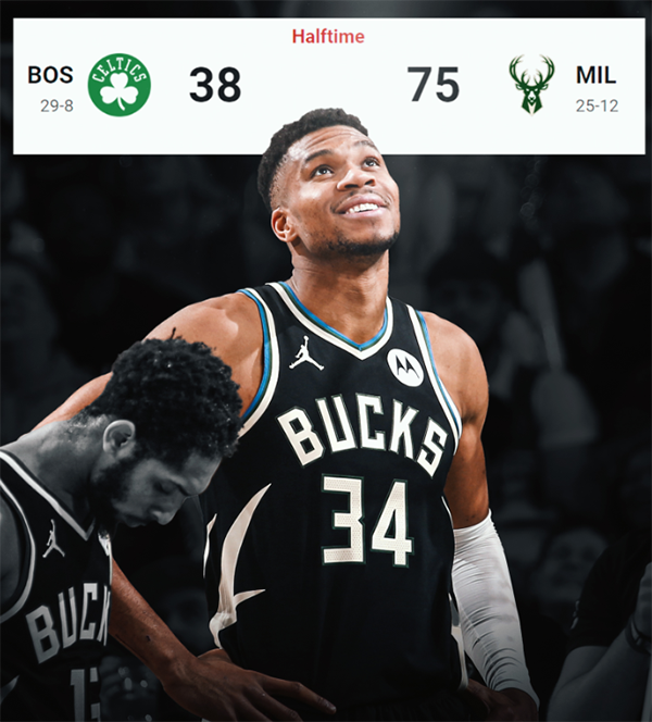 字母哥和利拉德上半场合砍35分,仅仅比绿军全队少3分。