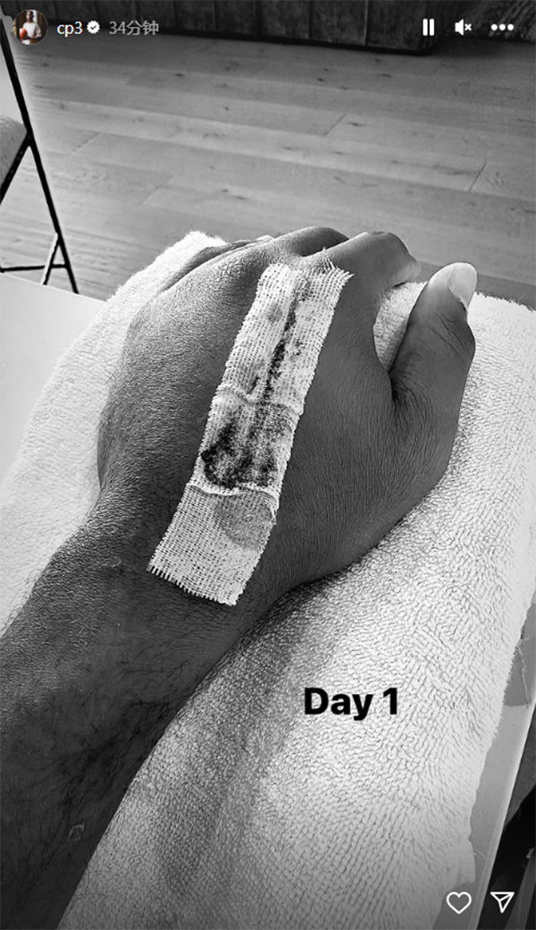 今日保罗更新社交媒体,晒出自己的左手术后照,手术刀口上盖着纱布,恐怕会留下很长的刀疤;保罗开启康复之路,配文写道:第一天。