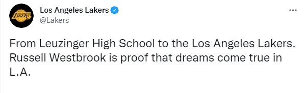 178直播10月19日讯 ,洛杉矶湖人官方晒出一处位于加州威少的巨幅壁画,配文写道:从卢金格高中到洛杉矶湖人队。拉塞尔·威斯特布鲁克是在洛杉矶梦想成真的证明。
