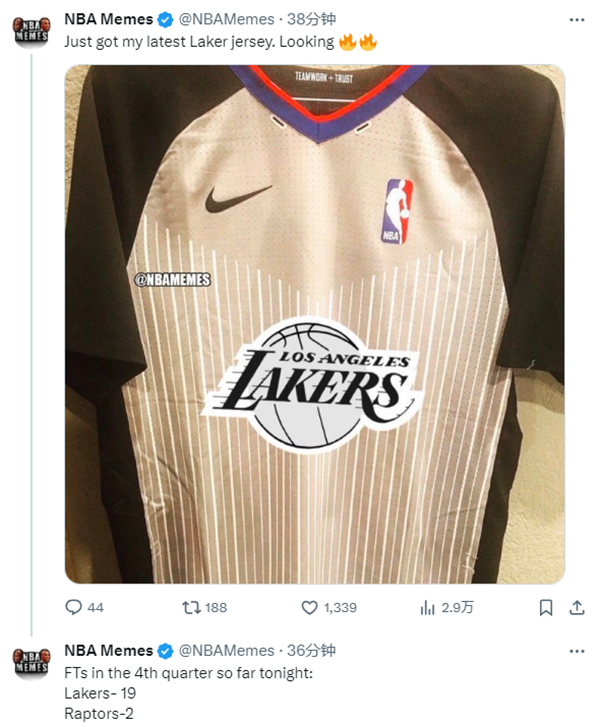 湖人末节罚球比猛龙多21次,21次的罚球数差距创联盟本赛季任意一节中最大的。