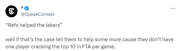 湖人今天必须赢是吗?要是这样的话,那告诉我们一声,我们今天干脆就不打了。那就让他们赢呗,今天晚上太不公平了。”