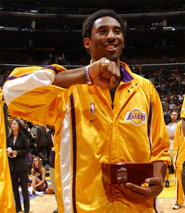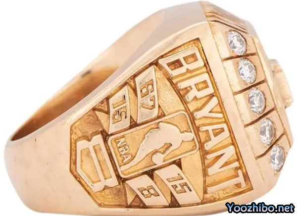 这枚戒指上镶着40颗钻石,由14克拉黄金制成,上面刻着湖人队logo、世界冠军、以及夺冠年份,刻着湖人常规赛67胜15负和季后赛15胜8负的战绩,还刻着科比的名字及其所穿的8号。