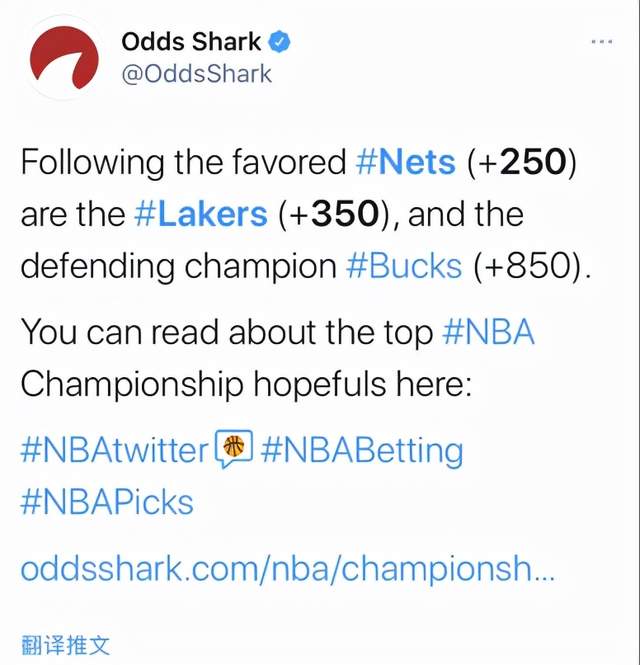 首先这家媒体给出的前三名球队分别是篮网+250,湖人+350以及雄鹿+850,其中篮网的赔率是最高的,比起湖人还要高。其实这并非一个奇怪的现象,因为大部分球迷还是会认为杜兰特、哈登以及欧文组成的三巨头会在比赛当中更加具有优势。如果不是上赛季欧文和哈登接连受伤的话,那么雄鹿也未必可以跨过篮网,更别说雄鹿最后还拿到了总冠军。至于湖人的话,他们即便拥有了三巨头,但是从纸面阵容来看还是比不上篮网。