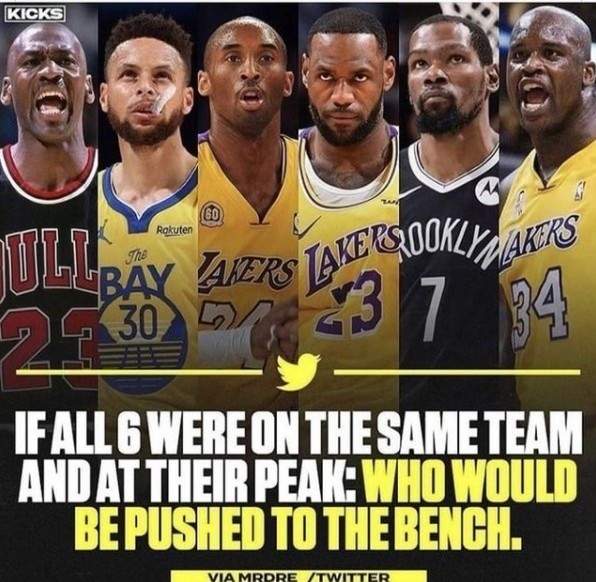这里面的六个球员可谓是涵盖了NBA历史上每个位置上的佼佼者,其中控卫就有库里,中锋有奥尼尔,小前锋则是詹姆斯和杜兰特,而分卫则是乔丹和科比。然而事实上这些球员里面除了奥尼尔之外,其他球员或多或少都可以兼任其他位置,比如库里也可以打分卫,詹姆斯也可以打控卫。而奥尼尔提出的这个问题因此也让人很难处理,到底选谁成为替补会更加合适呢?