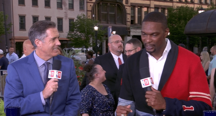 178直播9月12日讯,2021届奈史密斯名人堂入选典礼正式结束,热火名宿克里斯-波什压轴亮相,最后一个上台演讲,现场观众集体起立欢呼,詹姆斯和韦德都亲眼见证波什的荣誉时刻。