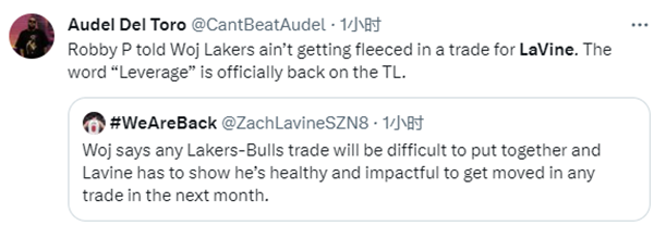 ESPN名记Woj表示:拉文因伤缺席了几场比赛,这几场比赛公牛在没有他的情况下打得好太多了,他自己显然也看到了这一点。公牛现在要想交易他必须让他证明自己可以保持健康并能打出影响比赛并取得胜利的表现。