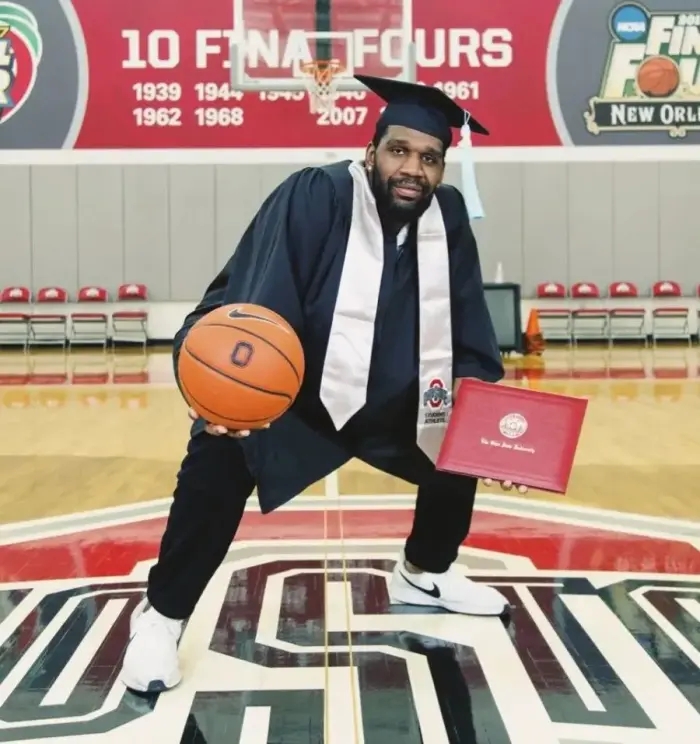 俄亥俄州立大学是奥登的母校,于19年毕业并获得体育产业学士学位,他曾在2007年率领该校队历史首次杀入NCAA决赛,当时面对霍福德和诺阿的围剿,单场砍下25分12板4帽,展现了极强的统治力。