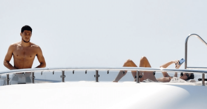布克和詹娜都躺在游艇的甲板上享受日光浴,24岁布克光着膀子享受假期,不过他和詹娜聊天对视时,给人的第一感觉是布克精神有些萎靡,甚至有点太虚了;接下来,他们将会前往卡普里度假,美媒透露他们的甜蜜爱情之旅不会很快结束。