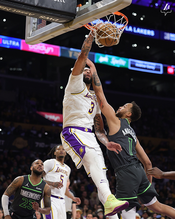 伤退前,浓眉出战12分钟,6投2中拿到4分4篮板3助攻2抢断;据统计,浓眉本赛季扣篮数达到200个,他也成为自1996年开始记录扣篮数据以来,湖人队史第3个单赛季扣篮200+球员;另外2人分别是奥尼尔(6次)和麦基(1次)。