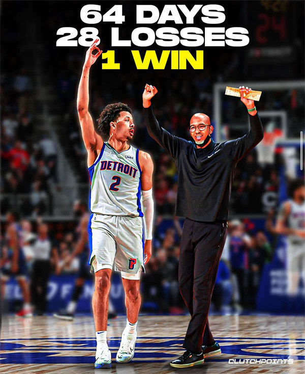 活塞老板汤姆-戈尔斯则表示:我为我们的球员经历逆境而继续战斗的方式感到自豪,我清楚这段时期很艰难,但他们一直昂首挺胸,并展现了自己真正的特性。连败已经结束,但艰苦的工作仍在继续。