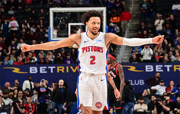 面对刚刚通过交易送走阿努诺比、弗林和阿丘瓦的猛龙,活塞上一场一度领先猛龙10分,下半场猛龙一直反扑,关键时刻一直保持悬念,所幸活塞顶住了压力,最终活塞2分险胜猛龙;终场哨响,坎宁安蹲在地上如释重负,之后CC咧嘴大笑并且拥抱队友,活塞主场球迷也激情庆祝。