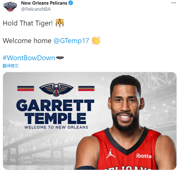 新奥尔良鹈鹕第一时间官宣,欢迎“老虎”坦普尔回家,欢迎萨托兰斯基加盟,鹈鹕交易鲍尔升级阵容,两大新援将协助锡安和英格拉姆冲击季后赛。