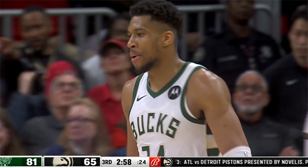 下半场,第三节字母哥继续冲击篮筐,带队12-5把领先优势扩大到21分,面对老鹰的反扑,字母哥强硬2+1以及一条龙杀到禁区隔扣对手打成2+1,打得客场瞬间安静下来;字母哥单节9中6独砍16分,隔扣2+1太霸气。