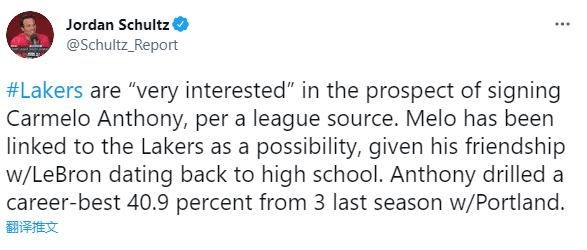 这不就是恐怖预警了吗?另外据其他记者爆料,目前湖人最有可能先签下的球员是安东尼!詹姆斯和甜瓜的关系不用多说了,过去这两年他在开拓者很开心也接受了替补和底薪,不可能不想要总冠军,湖人同样能为他提供底薪。现在的甜瓜尚有一战的实力,上赛季场均13.4分3.1篮板,能提供球队需要的投射能力!