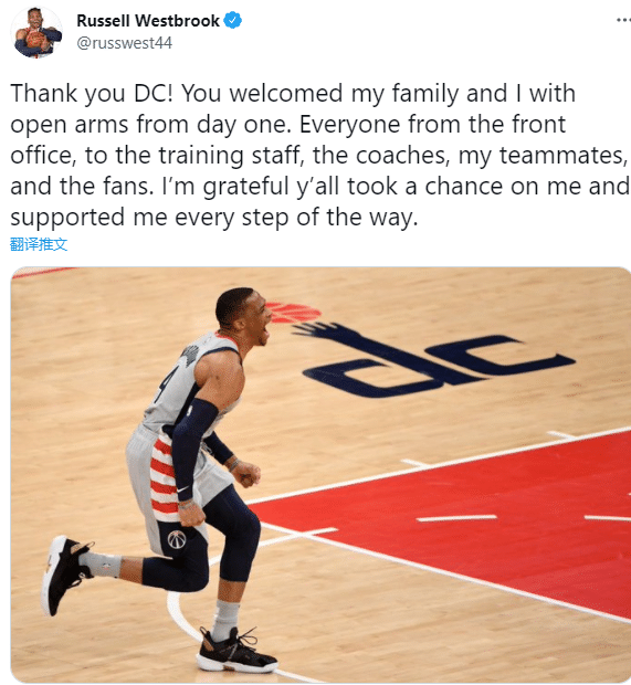 威少表示:谢谢你,华盛顿!从第一天起,你就张开双臂欢迎我和我的家人。从管理层到培训人员、教练、我的队友和球迷。我很感激你们给了我一个机会,支持我前进的每一步。