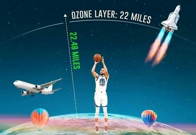 178直播讯 北京时间7月25日,美媒clutchpoints晒图公布了一项有趣的数据,勇士球星斯蒂芬-库里生涯投篮命中的总距离达到22.48英里(约36178米),而地球表面的臭氧层高度大概是22英里(约35405米)。美媒调侃,库里的进球总距离已经可以冲破臭氧层了。