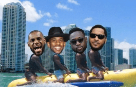 某日新闻报道,有位1米93,腮帮子很大的男子,深夜扛着梯子到热火主场美航球馆上空取下3号球衣,并乘上了最早开往洛杉矶的航班。