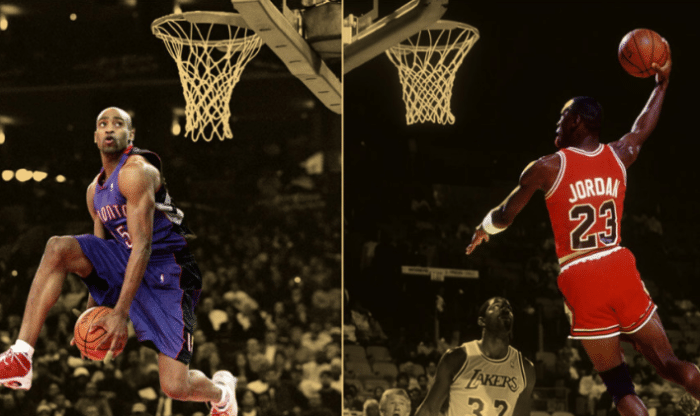 卡特是1998年第五顺位被勇士选中进入NBA的。后期和贾米森互换东家来到了猛龙。菜鸟赛季的卡特,场均就交出了18.3分5.8篮板3.2助攻的数据,并且获得了当年的“年度最佳新秀”。第二年,极速成长的卡特便参加了2000年的扣篮大赛,并凭借“篮板后转体180°接球大风车扣篮”获得了扣篮大赛冠军。卡特扣篮,虽不说是后无来者,但一定是前无古人的存在。