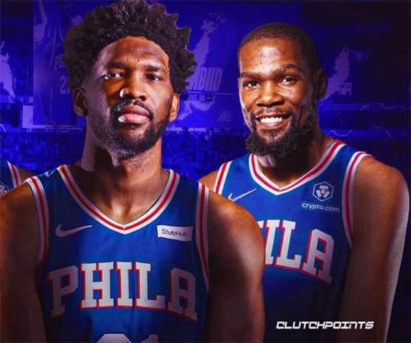 76人记者Aidan LaPorta不仅表示杜兰特是恩比德的最佳搭档,希望76人管理层引援杜兰特,而且列出一笔杜兰特1换12的交易方案,详情如下——