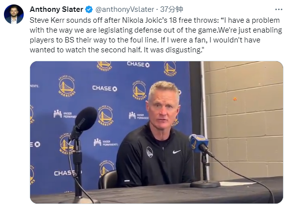 值得一提的是,赛后勇士主帅科尔炮轰联盟规则允许造犯规。