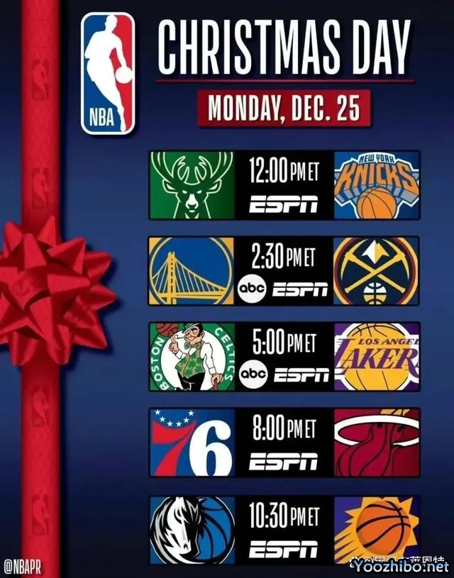 今年的NBA圣诞大战,共有五场比赛,包括尼克斯与雄鹿、掘金对阵勇士、湖人主场迎战绿军、热火对阵76人以及太阳对阵独行侠。这五场比赛,既有年轻球员的崛起,也有超级球星的璀璨。