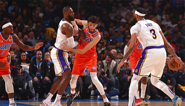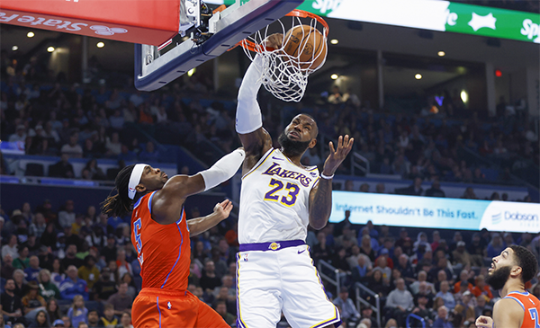 178直播12月24日讯 ,NBA常规赛结束一场焦点战,湖人客场击败雷霆,结束近期的4连败,同时终结雷霆3连胜。这场比赛詹姆斯复出,砍下40分7篮板7助攻2抢断2盖帽,浓眉哥也有不俗发挥,得到26分11篮板7助攻2盖帽,湖人的双核詹眉组合联手拿下56分。