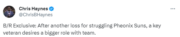 目前太阳14胜14负排在西部第十位,赛季至今,太阳三巨头仅仅一起出战24分钟,比尔正处于养伤期。