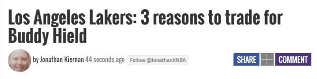 178直播讯北京时间6月28日,美媒LAKESHOWLIFE为湖人休赛期引援支招,他们列出了三条理由,指出湖人应该力争换来国王神射巴迪-希尔德,并给出了一套3换1的交易方案。美媒认为希尔德能够成为詹眉的好搭档,提升湖人的实力,有助于他们在2021-22赛季继续冲击总冠军。