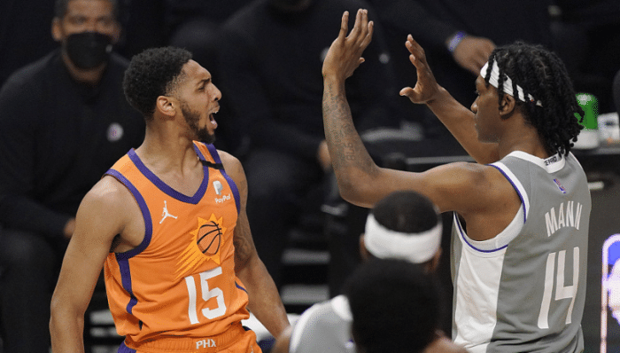 太阳如愿攻陷了斯台普斯球馆,勇夺赛点,根据数据显示,季后赛分区决赛历史中,球队在3-1领先的情况下,最终晋级概率为92.6%,也就是说现在的太阳晋级总决赛的概率已经窜升到了92.6%,这样的数据是非常高的,真的距离总决赛一步之遥。