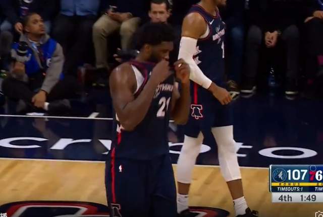 比赛进入到第四节,恩比德在一次面对戈贝尔防守中投命中之后,他耸了耸肩并且摊开双手,表示对手根本防不住我。在一次抛投命中后,恩比德拿下了个人本场比赛的第51分,创下赛季新高。当恩比德被换下场时,全场观众起立并且高呼MVP。