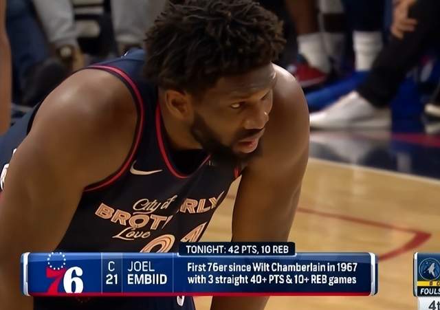 本场比赛,恩比德也创下多项纪录。第一,他连续12场砍下至少30分10篮板,为联盟自1972年的贾巴尔(连续16场30+10)后最长纪录。第二,恩比德连续3场砍至少40分10板,是76人队史1967年张伯伦后首人。第三,恩比德单场51分,再度刷新赛季得分纪录。